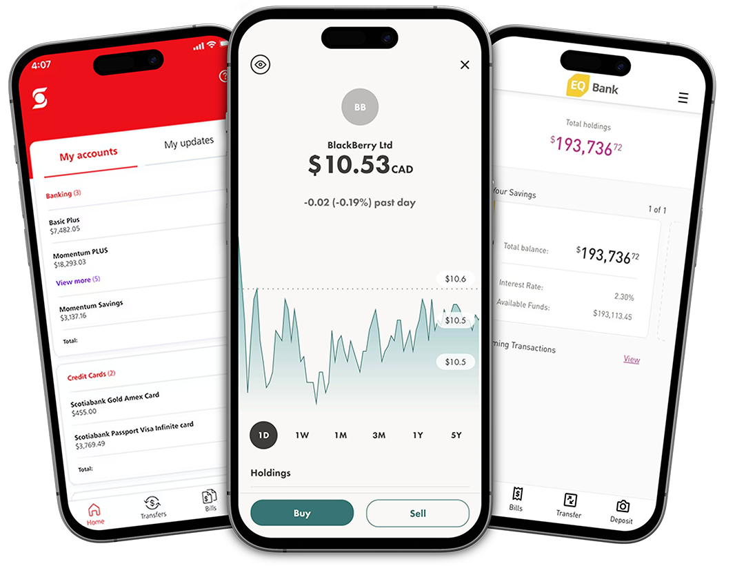 I referenced Scotiabank, Wealthsimple, and EQ Bank for their clean design, intuitive navigation, and simplicity, using them as inspiration to inform my design decisions as they are similar in nature/industry.