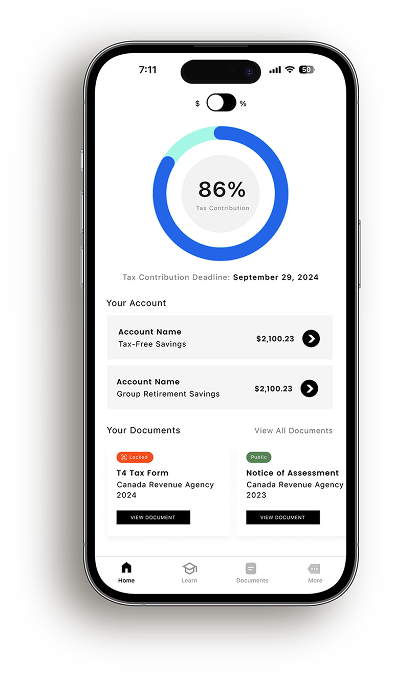The Document Manager gives users a single space to store, view, and manage all tax-related documents in one place. Important forms such as T4s, Notices of Assessment, and contribution records are clearly labeled and organized, allowing users to quickly understand what documents they have on file and access them when needed.
