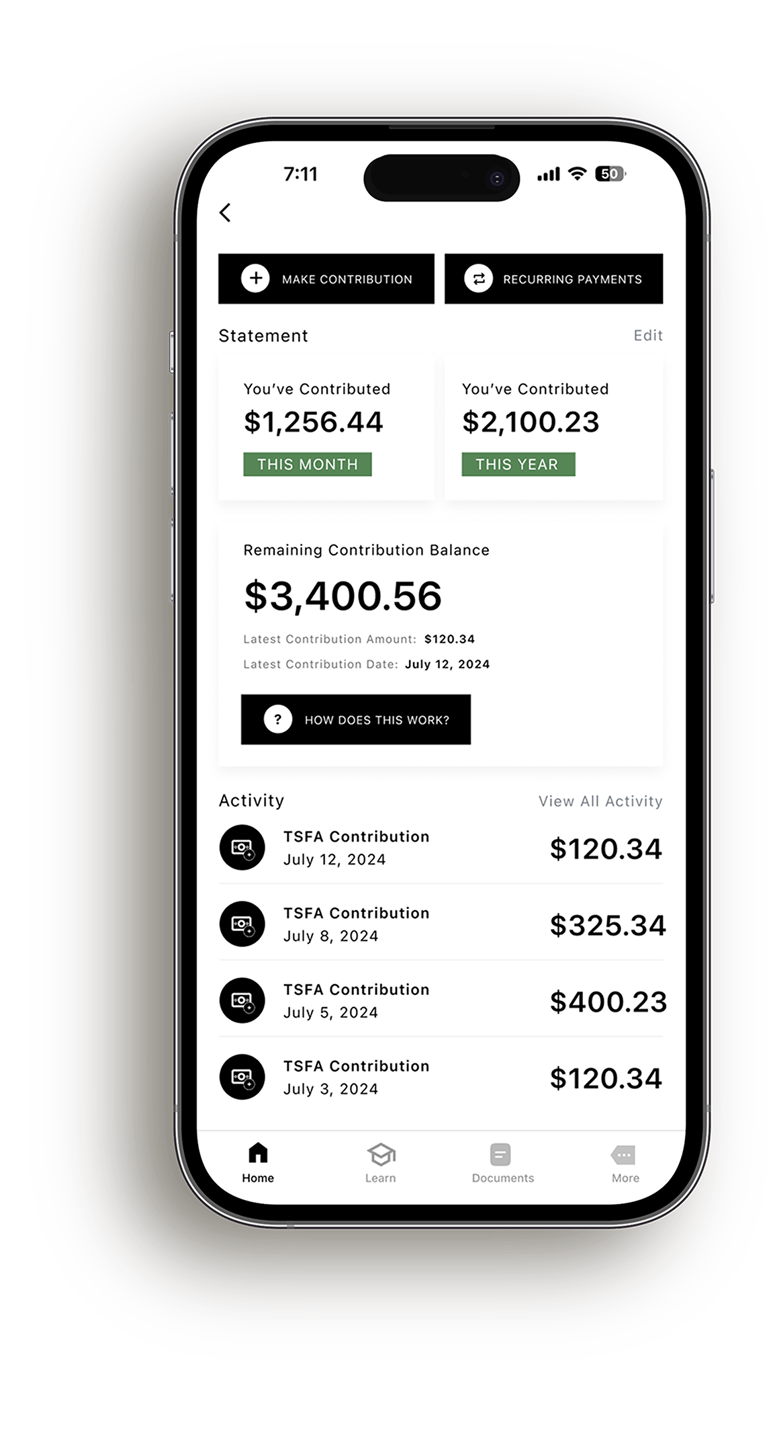 Make a Contribution/Recurring Payments: The Make a Contribution/Recurring Payments feature enables users to add funds or set automatic contributions.