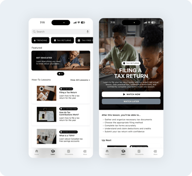The Education Hub gives users a simple place to learn about taxes without feeling overwhelmed. Lessons are grouped by topic and presented in an easy to browse format, making it simple to explore specific questions or follow along step by step. By breaking down complex concepts into clear, approachable content, the hub helps users build confidence over time and feel more prepared when managing their taxes.