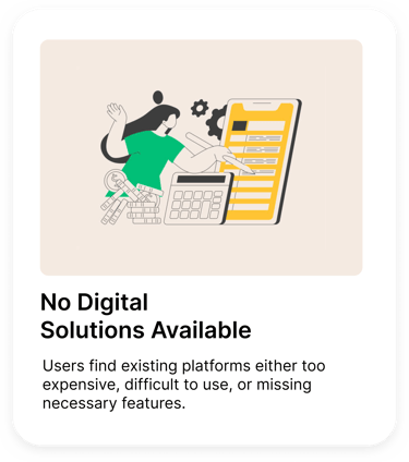 Lack of Accessible Digital Solutions: Users find existing platforms either too expensive, difficult to use, or missing necessary features.