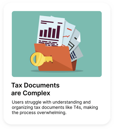 Tax Documents Are Complex: Users struggle with understanding and organizing tax documents like T4s, making the process overwhelming.