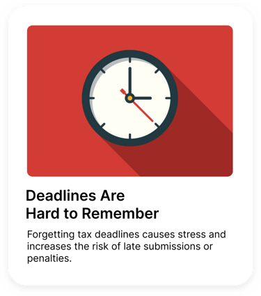 Difficulty Remembering Deadlines: Forgetting tax deadlines causes stress and increases the risk of late submissions or penalties.