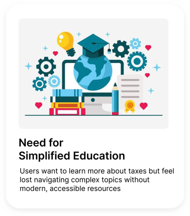 Need for Simplified Education: Users want to learn more about taxes but feel lost navigating complex topics without modern, accessible resources