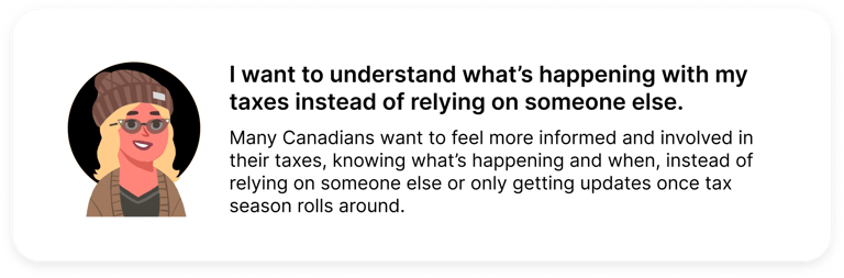 Canadians lack a centralized way to track their tax status, deadlines, and required documentation over time. As a result, tax education is lost, important dates are missed, and individuals are left reacting to issues only after they arise.